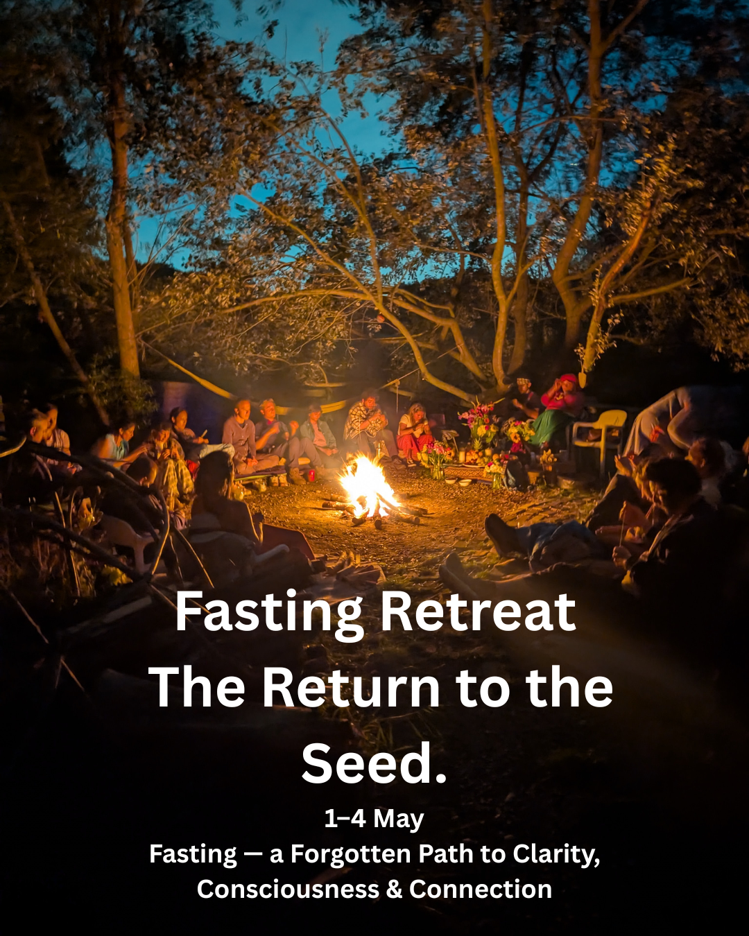 This is a guided fasting retreat in nature held in a supportive, ceremonial setting. The retreat is rooted in ancestral practices and focuses on reflection, simplicity, and connection with nature, fire, and community. It is a non-medical, experiential retreat.